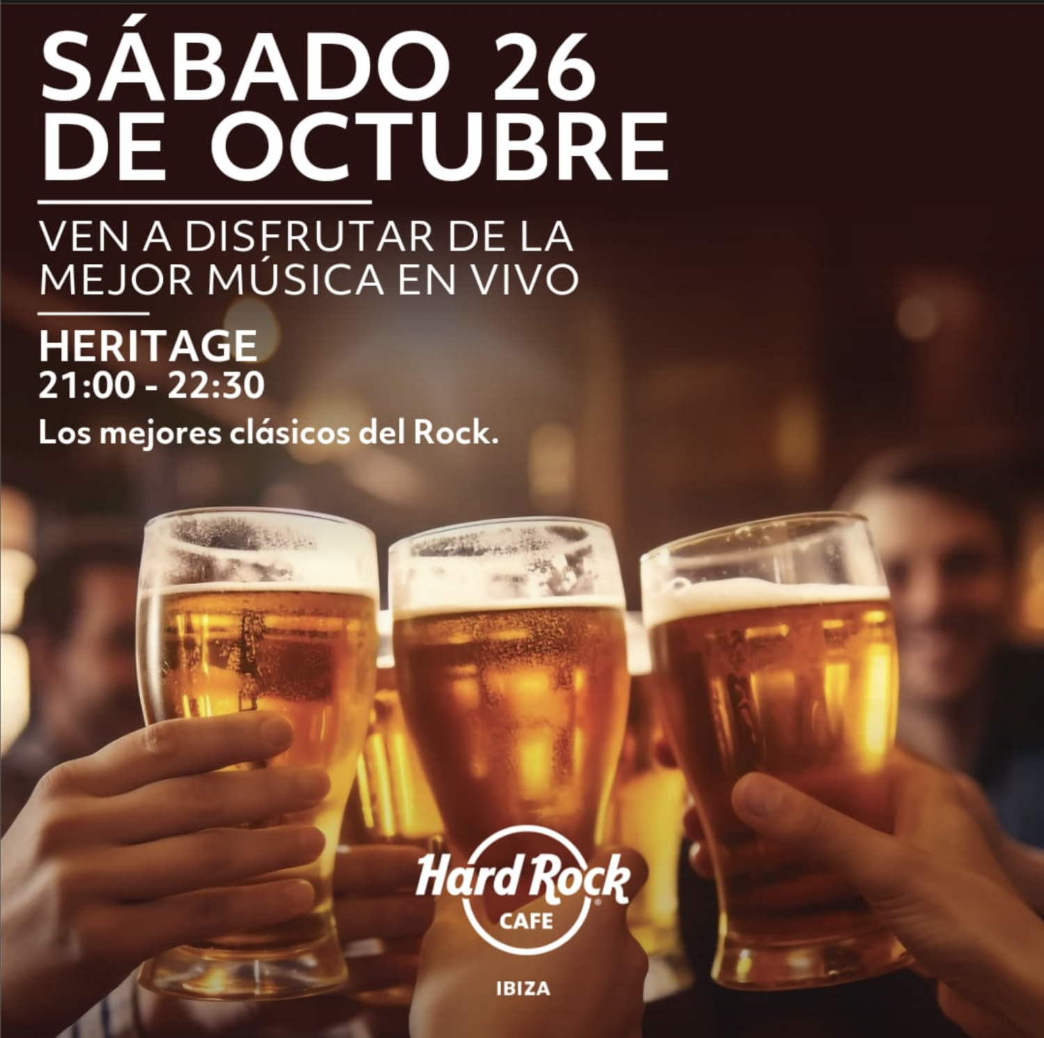 Freut euch auf einen epischen Samstag im Hard Rock Cafe Ibiza, im Herzen von Ibiza-Stadt! Genießt die Livemusik des Duos Heritage Rock and Folk und holt euch eure letzten Hard Rock Café Nachos und Burger der Saison.