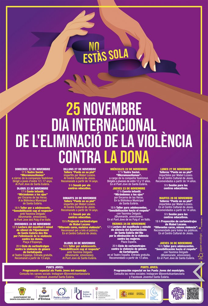 In diesem Sinne haben die Stadträte von Ibiza eine Reihe von Aktivitäten und Workshops vorbereitet, um die Bevölkerung zu informieren und zu sensibilisieren. Der Schwerpunkt dieser Veranstaltungen liegt auf der Bekämpfung der Grundursachen von Gewalt, der Förderung der Gleichstellung der Geschlechter und der Unterstützung der von solchen Vorfällen Betroffenen.