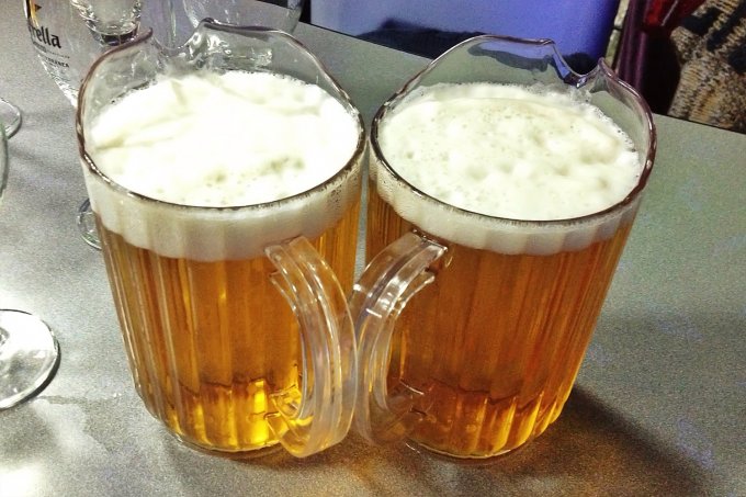 About fifteen minutes into the game, our food and drinks arrived. Vila Parc Bowling is constantly changing its offers, but tonight we were enjoying a ten-round game of ten pin bowling, a pizza and a jug of beer for four people sharing (with juice for the children) all of which cost less than €10 per head. Admittedly, I wasn't holding out much hope for the food but, even though not home-made, it was a surprisingly good pizza.