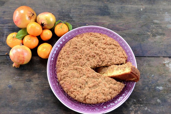 In America a “Coffee Cake” is a cake to be eaten with coffee, sometimes late in the afternoon, but more often mid-morning. New York comes into it, because apparently, a New Yorker who liked lots of the crumb topping, doubled the amount called for in the original recipe. Good ideas catch fast and New York has its own version. The original recipe calls only for cinnamon. But living on Ibiza in close proximity to North Africa, I am taken with all of the warm spices and so like to use star anise, cloves and nutmeg in addition. For crumb cake perfection toast and grind your own spices.