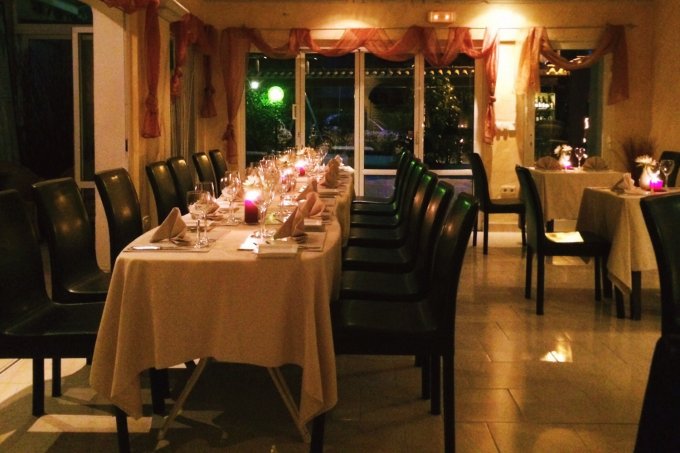 We were greeted by restaurant manager, Sabrina, and even though we were the first guests of the evening, there was a warm and welcoming atmosphere as she showed us to our table. Light and cheerful, with delicately-coloured furnishings and decor, candles already glowing on all the tables and fairy lights twinkling around the door, the restaurant exudes an atmosphere of celebration, akin to walking into a party or wedding reception.
