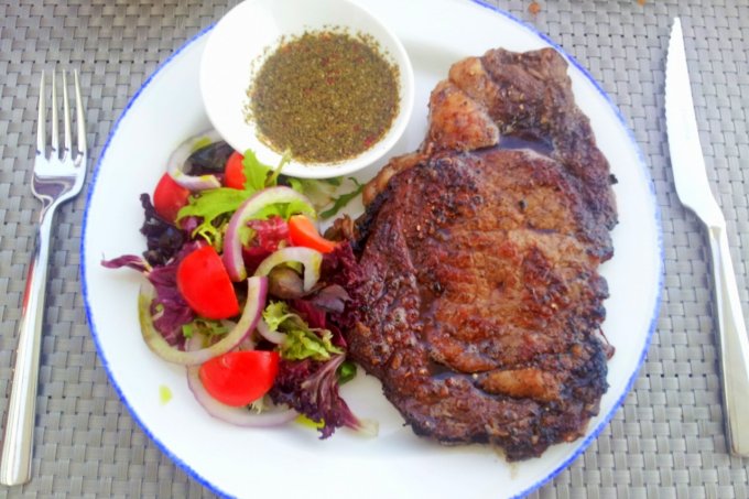 Already stuffed - not helped by the schoolboy error demolition of the bread and alioli along with a fistful of olives pre-starter - my main course landed. It was a sirloin steak the size of my head, so large we both laughed due to its size. Diving straight in, it was cooked to perfection, medium rare with each bite melting in the mouth as you wish for whenever you order steak. Nostalgic British pangs had urged my guest to order the Fish n Chips and she wasn't disappointed, again all totally fresh with the homemade breaded cod giving it a unique flavour, accompanied by home made fries, tartar sauce and a tasty salad. Our expectations were most definitely surpassed, I think influenced by pre-conceptions about what we might get based on our choices. This was a different quality.