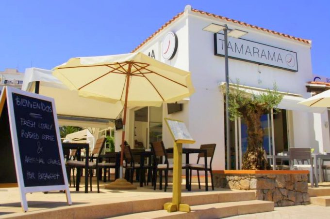 Located in prime position on the corner of the Puerto Deportivo in Santa Eulalia, in what was formerly the Pacha shop, Tamarama is a fresh looking cafe/deli/restaurant making waves in its inaugural season on the island. Everything about this place is fresh; the inviting and clean decor, the attitude of the owner and staff and of course the sumptuous homemade food, all freshly prepared each day from the open plan kitchen.