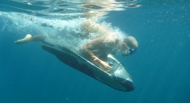 Water toys, like the Seabob, a kind of underwater scooter, give an even more direct experience of the sea, allowing you to move fishlike through the water. You can go close to the surface or dive down fast through the water like a sailfish. The Bladefish Seajet gives you a similar experience but at lower velocity for underwater exploration.