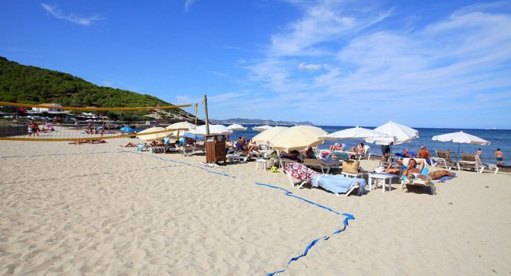 One of the most stunning beaches in the San Antonio vicinity, Cala Comte (Cala Conta) is made up of 3 coves which are some of the best for watching the legendary Ibiza sunsets. The beaches look out on to an archipelago of sensational islands, the sand is Caribbean white and the sea a dazzling shade of turquoise. But head over to the top end of the car park and locate the steps cut out of the cliffs and you will discover a petite cove which is dedicated to the naturist.