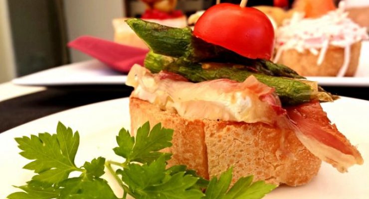 Pintxo is literally translated as ‘spike' and sure enough, a pintxo is a small, delicious snack usually pinned to a piece of bread by a toothpick. It is a national institution and doesn't half go well with a cold beer or a luscious glass of wine.