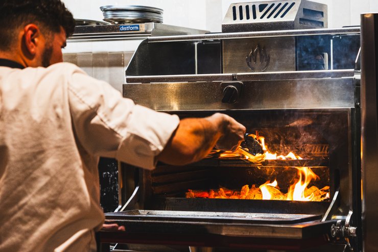 Die offene Küche und der auffällige Flammengrill fielen uns sofort ins Auge und erweckten das Menü im Handumdrehen zum Leben.