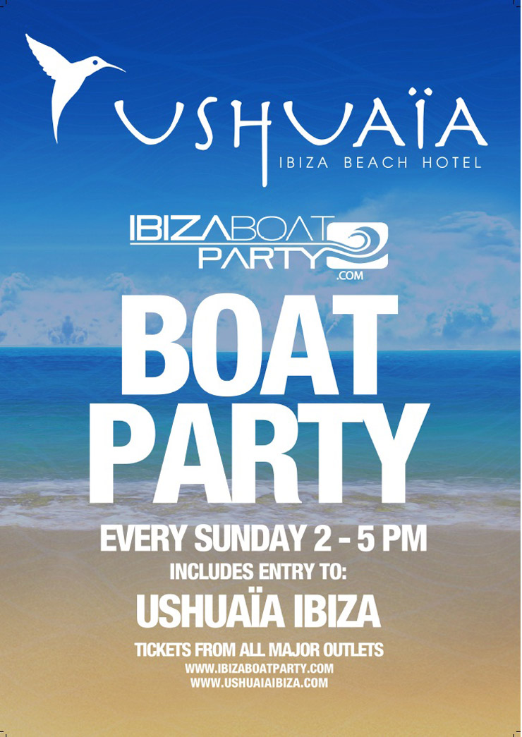 Ushuaïa Ibiza boat parties will take place every Sunday afternoon from the 30th of June until the 1st of September, departing from and returning to San Antonio. They run between 2 and 5pm, so will be a very warm and sunny affair as you sail along the gorgeous south-western coast of Ibiza. Your ticket gets you three hours of partying on the sea with Ushuaïa resident DJs, two glasses of sangria on board, a bus back to Playa d'en Bossa and free entry (before 7pm) to the Ushuaïa Sunday party, which just so happens to be a young lad by the name of Avicii, heard of him?