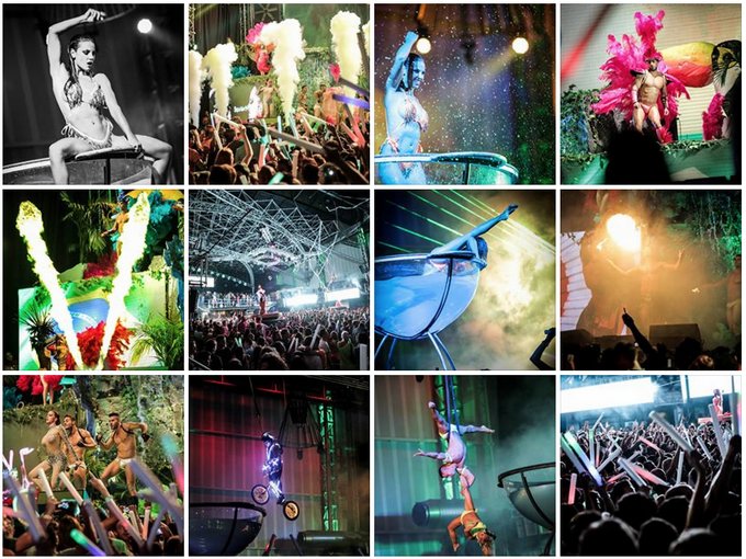 SupermartXé is the ultimate show. YouTube them and have a look at some of their videos and you'll see what I mean. Nalaya, with her gutsy voice and impressive beat-boxing skills, the dancers, with their lack of clothes and huge 'assets', the DJs, with their sub-par Daft PUNK robot suit efforts (they still look cool though) and the performers which vary from the sexiest of sexy ladies in giant cocktails sparying water all over the show to a man on a BMX suspended from the sky - all of this comes together with a typical packed out main room full of people from all walks of life that are there shake their booty at the guy or girl next to them.