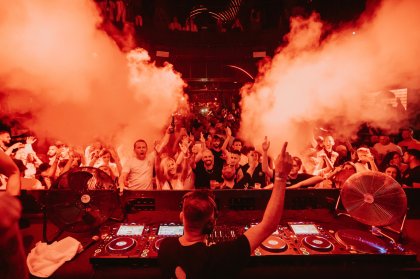 Spinning - or backspinning - with reckless abandon British selector Melé bent scandalous 90s hip-hop into the arms of jittery chart hits. His style, characterised by epileptic mixing and a refusal to play even half a track out had the crowd slightly taken aback - although admittedly it would be hard for anyone to match such soaring energy levels. High-octane synth cannons a la Hudson Mohawke sat amongst rosy garage numbers as Idris Elba - amiable regular at the Hotel - took up a mic and welcomed himself to the stage. Elba is somewhat of an oddity on the island - in a single summer he has experienced a curious rise to relative notoriety. After playing at IMS earlier in the season, along with notable appearances at San Antonio's Pike's venue, I was intrigued to sample this oddity - and was certainly surprised. Beginning with an acid touched techno line Elba quickly dropped into a slew of popular hits, touching on the Arctic Monkeys, various indie smashes and 'old skool' garage gems. His constant MC-ing and spirited gestures succeeded in spurring the crowd from their muggy stupor - the sweat dripping from Elba's brow a sign of his love affair with audience interaction. Encouraging collaborator Doorly to jump in and out of 'the mix' the selections continued to fly at a frantic pace before DJ Wire - precursor to the party's headline act - took up the hand-clapping mantel. Throughout the night we were treated to a pleasingly vibrant visual show courtesy of the stage size LED screens - lending the night the vibe of a bigger festival sibling. A snippet of Zombienation's Kernkraft 400 swung into play before being side-lined by the gravelly instructions of Fatman Scoop's Be Faithful. After setting up MTA Records with Chase & Status in 2008 producer Sam Wire has enjoyed international gigging fame after tackling remix work for - amongst others - Example, Ellie Goulding and Kids in Glass Houses. Since 2011 Wire and Example have performed at festivals and clubs around the world as a duo - one record selector one MC - bringing British singer-songwriter Elliot Gleave's electro infused pop to the masses. Although the idea of MC-ing falls slightly short of a full electronic performance, shifting from one lively hit to the next Gleave's - remote mic in hand - traversed the stage with the skips and an adept party starter. Even though the Ibiza Rocks courtyard is no small space, Example seemed to swell against the imaginary rafters - beckoning beneath the dusky Balearic night.