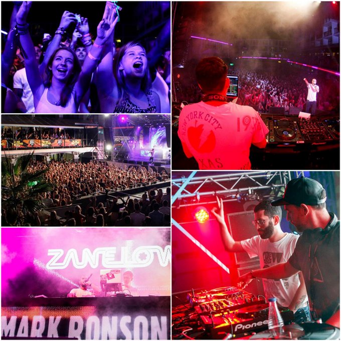 We've seen Ronson and Lowe join forces before, and its clear that the two of them are great friends behind the spotlight, their chemistry behind the decks was obvious, their enthusiasm infectious. They playfully tripped from one track to another, mixing hip hop, R & B and popular hits with old school garage and house party classics. High energy, high spirits was the chosen mantra as Zane and Lowe bounced, ethused, from one side of the stage to the other. Taking it in turns to 'take up the mic', Ibiza Rocks was witness to an event which on one side produced accessible, light audio but on the other blistered with ever rising levels of energy. Contender for highlight of the night, the Zane-Lowe megamix machine dropped a quickfire mashup built from the various cover versions of The Zutons' Valerie. Ronson's rise to widespread fame could be largely attributed to his remix of this track, turning it from a relatively mellow indie flick to an upbeat whirler. The arms of the young crowd were held almost entirely aloof for the duration of the performance along with camera phones, faces and clawing hands.