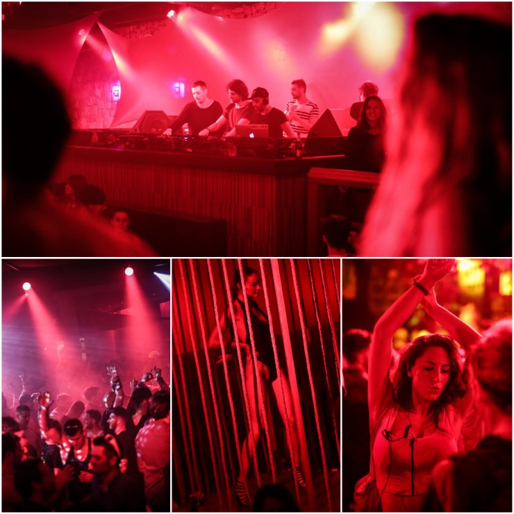 We began our night in Kehakuma on the terrace next door, the long-running Space techno night which, though overshadowed aesthetically by the bombastic Elrow next door, continues to hold its own musically, providing a more subtle, heads down dancing option for those who like a no frills stomp session. Close-knit trio Santé, Sidney Charles and Darius Syrossian was hammering it out in a terrace awash with deep red. The back VIP area had been sectioned off with a red cloth, which added a nice intimacy to the dance floor, but applying the same covering to the stone wall behind the DJ booth was a mistake - it's the most beautiful feature of the room! The boys were in fine form, their style a little lighter than the dark and aggressive ambience the Kehakuma decor suggested, but still with plenty of punch aided by a responsive crowd.