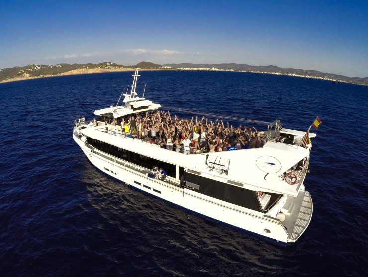 - Das Pukka Up-Boot fährt am Anleger gegenüber des Springbrunnenplatzes in der Mitte von San Antonio ab. Die Bootsparty beginnt um 18.00 Uhr (17.00 Uhr im September) und dauert drei Stunden.